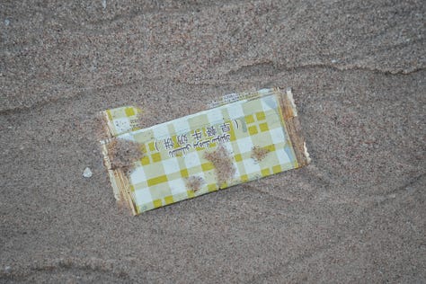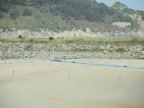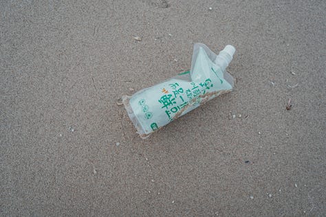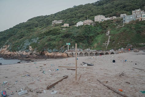 這樣的現實,在緊鄰中國的馬祖也顯得格外奇特。課程後多留了一日,散步到牛角(復興4),傍晚在海邊散步,蹲在地上研究對岸漂來的海洋廢棄物。