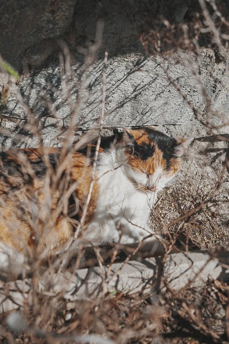 中午夥伴開車帶我們去西尾半島吃午餐,漂亮的老屋改建的建築和特色菜,喝了馬祖和澎湖的島啤酒,再沿途拜訪了養淡菜的兩個大哥。港邊有貓咪,我辨認了很久,才確定這是十年前遇到黃金獵犬蓉蓉的芙蓉港。去的時候剛遇上大潮漲潮,海水滿溢水線貼緊著防潮堤。