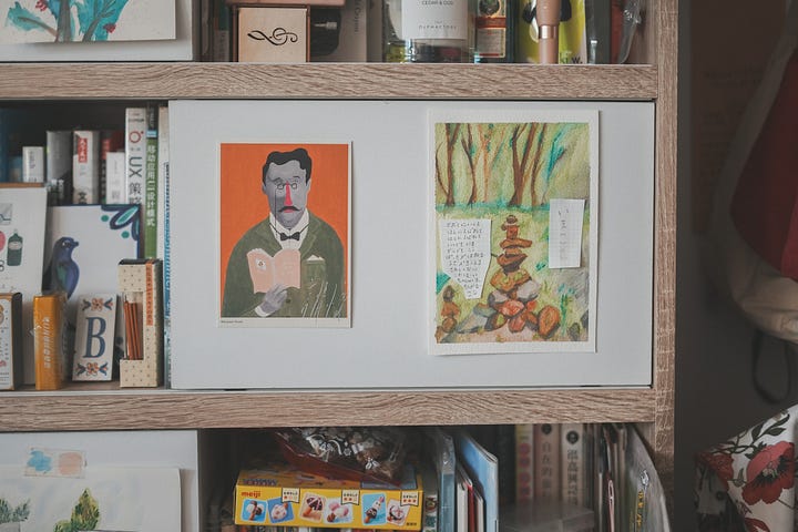 幾天前整理房間時,手裡翻著櫃上各種存積許久的繪本、攝影集和雜誌,腦袋突然浮現一抹靈光——比起在一直更新的幸福裡不斷遷徙,在舊的幸福裡多待一段時間,好像比較幸福。舊的幸福其實能用好久喔。這些書,有的沒的旅行小物、禮物、信件卡片,不管過幾年再翻看都還是好讓人戀愛。若再花時間將它們拍攝、畫下,或講述它們的故事,就算沒有新的幸福加入生命,擁有這些也好足夠。