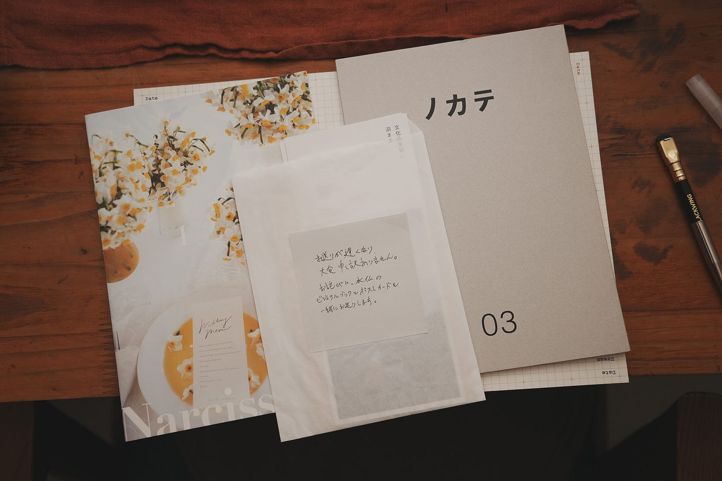 去年到馬祖田調時,住進出版社合作夥伴整理得非常好的空間。在一樓公共書區,發現一本名叫《ノカテ》的水仙花小誌,主角是福井縣越前海岸的水仙花農,隨手翻翻,喜歡到不知該如何是好,馬上找到線上購買的網址,請當時還在日本的Rumi幫我下訂。