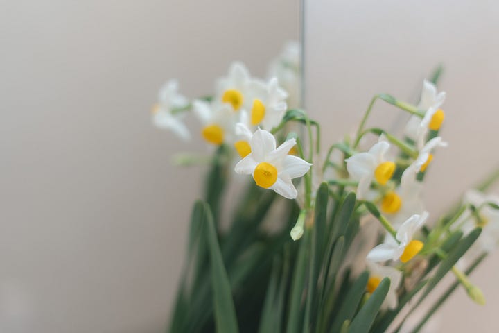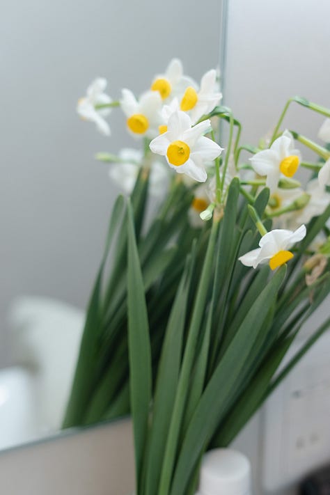 不過我那幾天,回到飯店看到鏡前的它們就非常開心且安心,整個房間都是水仙花的香氣。好像空間真的是自己的那樣,與這個初來乍到的城市已經有了牽絆。花可能是我和一個地方最細微的牽絆,就像終於在台南找到買花的地方後,就覺得她接納了我一樣。