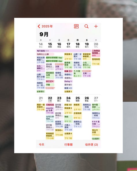 找到2026的使用方式。除了延續在Google Sheet裡一眼可以看盡的專案時間地圖、iCloud Calendar容許我可以只專注但又能隨時搬動下一個小時任務的流動,再加上以手寫拼湊薦骨聲音的內外筆,以及常芷漂亮的月掛曆。