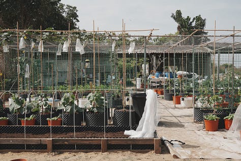 這整個冬天,晚上九點後我爸人就會消失不見,去顧他的菜園。為了他的農保種了80株芭樂是交差了事,現在認真起來,已經是我數不清的——五種番茄、三種生菜、皇帝豆、小黃瓜、節瓜、茄子、木瓜⋯⋯和上百株不知多少品種的草莓。這個型態的我爸,上次見到應該已是25年前,痴迷程度套我姊的一句話是:「你想得神農獎?」